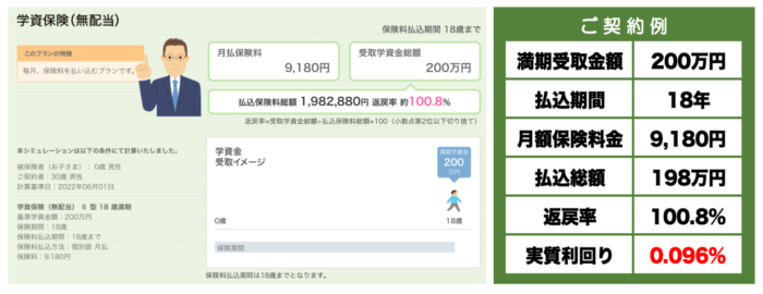 上記の内容の場合、預けた金額に対して最終的には100.8%を受け取ることが出来ます。しかし、ここで問題になるのが、教育費の物価上昇です。