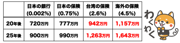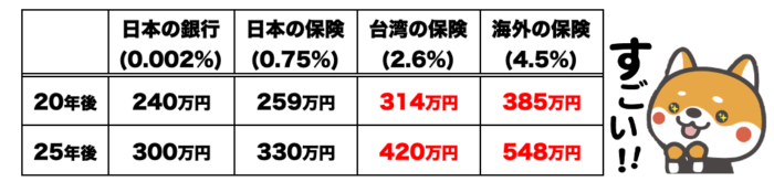 台湾では年利2.6%が最高ではなくそれ以上の貯蓄保険も多々あります。