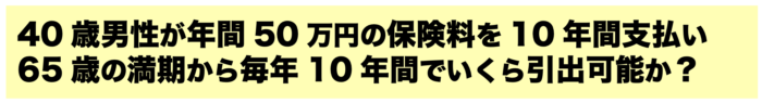 保険料:50万円 受取開始:65歳 受取期間:10年
