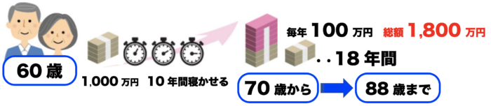 88歳までに合計1,800万円(100万x18年)の受取